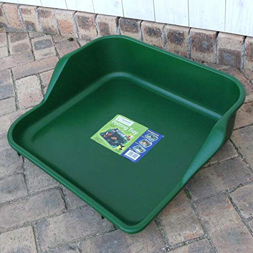 - 英国Stewart社のプラスチック製ポッティングトレー(シェルフ付)です。大型で土がこぼれにくい形の作業用トレー。用土類を混ぜる作業や、ベランダなど土をこぼしたくない場所での鉢植えの植え替えにとても便利です。シェルフ(後方上部)は取り外すことができ、作業中は写真のようにガーデンツールやポットを置いたりできます。(写真のツールやポットは商品に含まれません)サイズ:幅64.5cm×奥行き54cm×高さ16.5cm色:グリーン素材:プラスチック製
