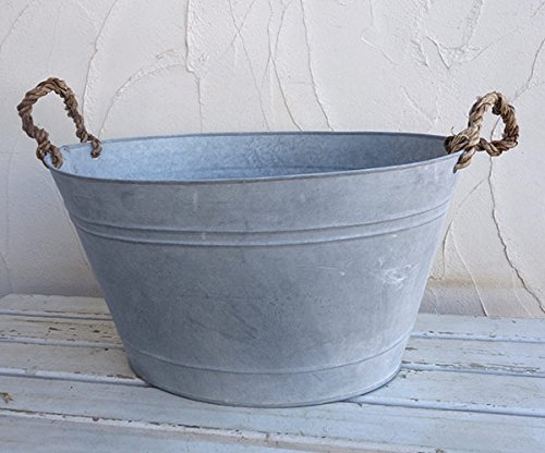 - 古びた亜鉛バケツの雰囲気を楽しむオールドジンクシリーズ。大型で楕円形の金属製タブ(たらい)です。お庭での洗いものや植え替え作業、土混ぜなど、いろいろな用途にご利用いただけます。把手もついているので、ガーデニングツールなどの収納や持ち運びに便利です。もちろん、アンティークな味わいを生かして、ドライフラワーなどを入れてインテリアに飾ったり、キッチンやリビングの物入れなど、いろいろに使えます。英国のガーデニング用品ブランド、エッシャーデザインの製品です。