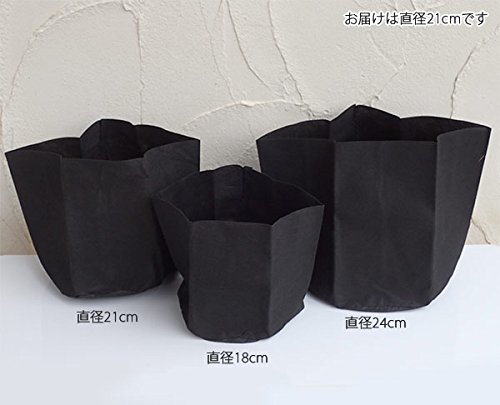 - 植木生産用の地中ポット(ルートポット、ルートバッグ)です。根を土に張らせたくないものや、植え替え予定の植物の一時的な地植え、花や実を早くつけさせたいものなどに最適です。この地中ポットに植え付けてそのまま花壇や庭に植えます。根域が制限されるため、植え替えなどが楽になり、また周囲への根の侵入を防ぐことができます。さらに、植物は根域を制限されると花つきや実付きが早くなったり実付きが良くなる性質があるため、果樹栽培などにも利用されます。大苗育成用、高排水性で花苗・下草・グランドカバーなどに最適です。用土量に合わせて折り曲げられます。薄生地(厚み0.5mm)タイプなのでお値段もお手頃で使いやすい製品です。サイズ:直径21cm、高さ20cm容量:約5.5リットル材質:ポリプロピレン不織布・綿(縫製糸)生産:中国製(裁断・縫製)※写真はイメージです。