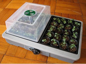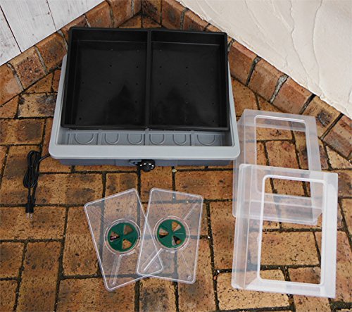 - 内蔵ヒーターによって地中(トレー内)から植物を温める家庭用発芽・育苗器と、この育苗器に入れてご利用いただける育苗ポット6枚のセットです。 草花やハーブ、野菜の種まきやさし芽にお使いください。 育苗器の透明フードが地表の水分の蒸発を防ぎ、植物の生育に適した湿度状態を保つことができます。