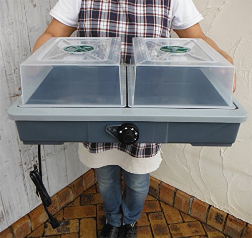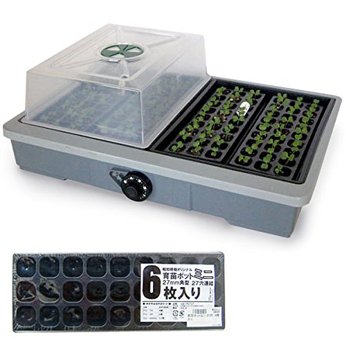 - セット内容:家庭用発芽育苗器:愛菜花(あいさいか)×1セット[昭和精機工業]育苗ポットミニ・27穴(27ミリ角)6枚入り×1セット○家庭用発芽育苗器:愛菜花・本体(幅約53cm、奥行約38cm,高さ約9cm)1個、専用フードトレーセット(内容:トレー・フード・フードカバー)(幅約25cm,奥行約33cm,高さ約16cm, トレーのみの高さ6cm)2個、5段階温度調節機能付き。