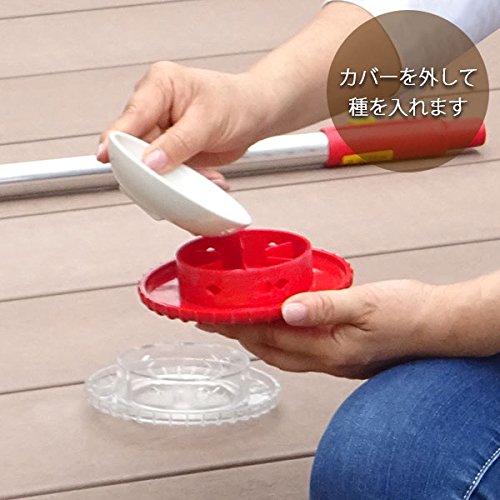 - 種を入れて押すことにより、立ったままで均一にスジ蒔きすることが出来る、とても便利なツールです。 家庭菜園や畑で、腰やひざに負担のかかる種まきを楽にすることできます。 アルミニウムハンドル118cmとセットでお届けします。 ドイツのクラインガルテン(市民農園)用に開発された製品で、家庭菜園や小規模の農場での種まきの省力化に適しています。 リールの中に種を入れ、ハンドルを設置してころがすだけで種がまけるので、腰やひざへの負担がかからず作業が快適にできます。