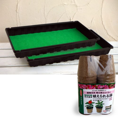 - ジフィーポットとジフィーベーストレーの便利な種まきセットです。 ジフィーポットはピートモスを主原料とした育苗ポット。直径8cmのポットに種まき用の培養土を入れ、種をまいて苗を育ててください。通気性、保水性に優れ、植物の生育を促進します。自然に土に返る素材なので、苗が育ったら苗を抜かずにポットごと植付けできます。植え替えによる根の植え傷みがありません。 ベーストレーは細かい種など、直接上から水遣りをすることができないものの育苗用トレーです。付属のアクアマットを敷いて水を染み込ませ、その上に種まきをしたジフィーポットを並べて底面から吸水させます。植物に必要な水の給排水をコントロールしますので、失敗なく育苗できます。 セット内容: ジフィーポット丸型8cm30個入り × 1 ジフィーベーストレー(底面給水トレーとマット)[27cm×54cmサイズ2セット入り] × 1