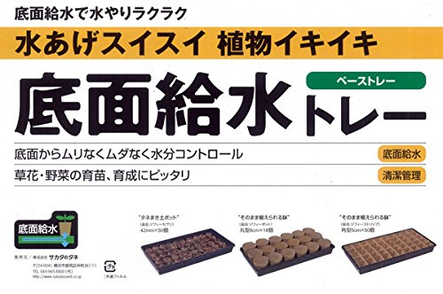 ジフィーポットとジフィーベーストレーの便利な種まきセットです。 ジフィーポットはピートモスを主原料とした育苗ポット。直径8cmのポットに種まき用の培養土を入れ、種をまいて苗を育ててください。通気性、保水性に優れ、植物の生育を促進します。自然に土に返る素材なので、苗が育ったら苗を抜かずにポットごと植付けできます。植え替えによる根の植え傷みがありません。 ベーストレーは細かい種など、直接上から水遣りをすることができないものの育苗用トレーです。付属のアクアマットを敷いて水を染み込ませ、その上に種まきをしたジフィーポットを並べて底面から吸水させます。植物に必要な水の給排水をコントロールしますので、失敗なく育苗できます。 セット内容: ジフィーポット丸型8cm30個入り × 1 ジフィーベーストレー(底面給水トレーとマット)[27cm×54cmサイズ2セット入り] × 1