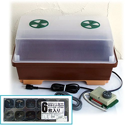 - 内蔵ヒーターによって地中(トレー内)から植物を温める家庭用発芽・育苗器と、この育苗器に入れてご利用いただける育苗ポット6枚のセットです。 初めての方におすすめの、サーモスタット付きのセット。 植物の保温や発芽・生育適温の環境作りに最適です。 キャピラリーが自在に動くサーモ(ZY-6A)をセットし、地温を直接管理できます。