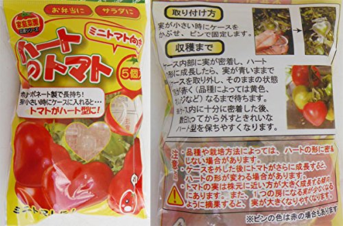 - ミニトマト、家庭菜園用のミニトマトの型どりケース。 ハート型のケースが5個入っています。 家庭菜園で育てたミニトマトの実が小さいうちになったらケースをかぶせ、適度な大きさになったら収穫します。