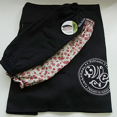ガーデニングエプロンとリバーシブル腕カバー(ブラック/ローズ柄)のセット ノーブランド品