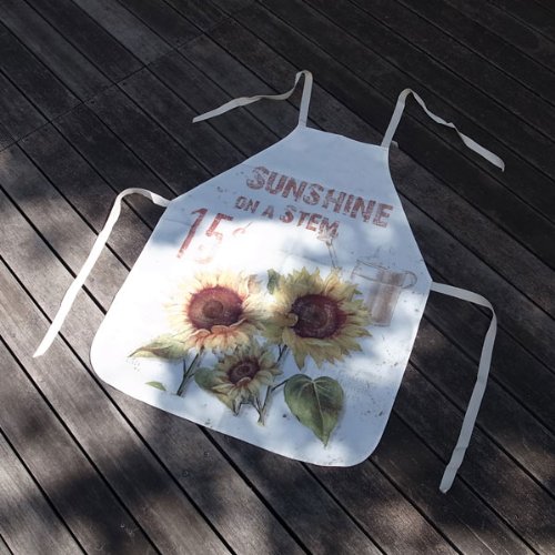 シンプルなエプロン。ひまわりをあしらったユーズド感のあるテイスト。デニムパンツともよく合います。テーブルクロスのようなしっかりとした生地ですので、ガーデニングはもちろん、お料理、お掃除などにもどうぞ。別柄でローズもございます。サイズ:幅57~60cm、長さ72~75cm首紐の長さ:53~54cm腰紐の長さ:53~54cm素材:クロス※ポケットなし※多少の折りシワがございます。ご了承下さい。