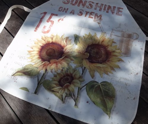 - シンプルなエプロン。ひまわりをあしらったユーズド感のあるテイスト。デニムパンツともよく合います。テーブルクロスのようなしっかりとした生地ですので、ガーデニングはもちろん、お料理、お掃除などにもどうぞ。別柄でローズもございます。サイズ:幅57~60cm、長さ72~75cm首紐の長さ:53~54cm腰紐の長さ:53~54cm素材:クロス※ポケットなし※多少の折りシワがございます。ご了承下さい。