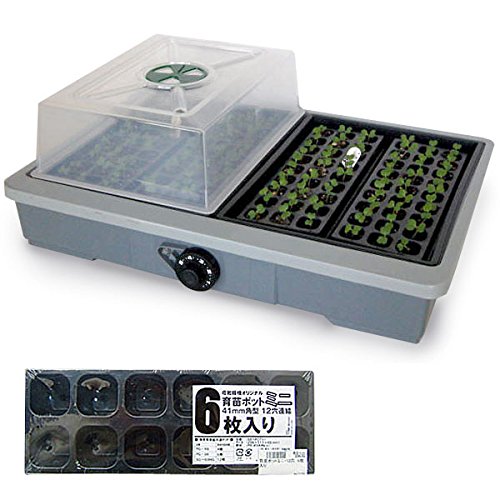 - 内蔵ヒーターによって地中(トレー内)から植物を温める家庭用発芽・育苗器と、この育苗器に入れてご利用いただける育苗ポット6枚のセットです。 草花やハーブ、野菜の種まきやさし芽にお使いください。 育苗器の透明フードが地表の水分の蒸発を防ぎ、植物の生育に適した湿度状態を保つことができます。