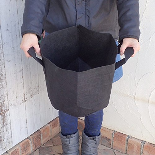 - 野菜・果樹・庭木が丈夫に育つ!高通気・良排水の不織布バックで丈夫な野菜や果樹が作れます。厚生地(厚み1.5mm)で優れた耐候性、大型庭木を育てられ移植が簡単な根域制限に。使い易い持ち手付きタイプの丸型です。苗木から大型の庭木に育てたり、苗木を植えこんでそのまま庭や畑に埋め、根域を制限して植え替えが容易な地中ポットとしても利用できます。このサイズはトマト・ピーマン・ジャガイモ・ネギ・イチゴなどの野菜栽培にもぴったりです。サイズ:直径30cm、高さ30cm容量:約17リットル材質:ポリエステル不織布・綿(縫製糸)持ち手付き生産:中国製(裁断・縫製)
