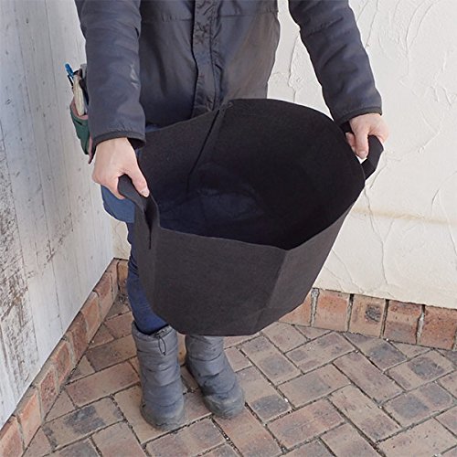 - 野菜・果樹・庭木が丈夫に育つ!高通気・良排水の不織布バックで丈夫な野菜や果樹が作れます。厚生地(厚み1.5mm)で優れた耐候性、大型庭木を育てられ移植が簡単な根域制限に。使い易い持ち手付きタイプの丸型です。苗木から大型の庭木に育てたり、苗木を植えこんでそのまま庭や畑に埋め、根域を制限して植え替えが容易な地中ポットとしても利用できます。このサイズはトマト・ピーマン・ジャガイモ・ネギ・イチゴなどの野菜栽培にもぴったりです。サイズ:直径35cm、高さ30cm容量:約25リットル材質:ポリエステル不織布・綿(縫製糸)持ち手付き生産:中国製(裁断・縫製)