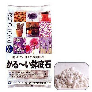 - ・かる~い鉢底石5リットル入り とにかく軽いのが特長で、大型のコンテナや屋上緑化にもおすすめの鉢底石です。通常のパーライトよりくずれにくいので繰り返し使えます。天然素材を発泡させたものですので無害です。 さらに、使った後はくずして土に混ぜ込めば土壌改良剤になります。1000℃以上で燃やしているため、無菌無臭です。 鉢の底からナメクジなどが入りにくい特長があります。