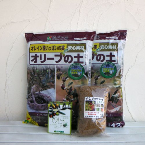 - オリーブの植え替えや植え込みに便利な土と肥料、それにマルチング用のやし繊維が入ったお得なセットです!セット内容:・オリーブの土12リットル入り×2・錠剤肥料オリーブ用60錠入り(12-12-12)×1・カラーヤシ繊維(茶)100g入り×1<オリーブの土12リットル入り>カルシウムを含む土が大好きなオリーブの為に配合された専用用土です。