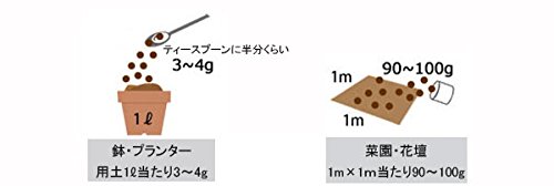 - 使用上の注意:なるべく肥料が直接根に触れないようにしてください。ALAの効果により花や葉の色調が変化する場合があります(生育には問題ありません)。使用後は密封チャックを締め、直射日光や高温や高質を避けて保管して下さい。本商品は有機入りであるために、稀にコバエ等の昆虫、カビ類、不快臭等が発生する場合がありますので、室内でご使用になる際にはご留意下さい。本商品には動物由来たん白質が入っていますから、家畜等の口に入らないところで保管・使用して下さい。