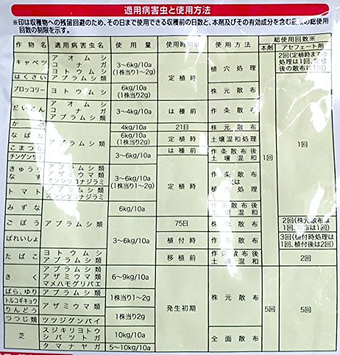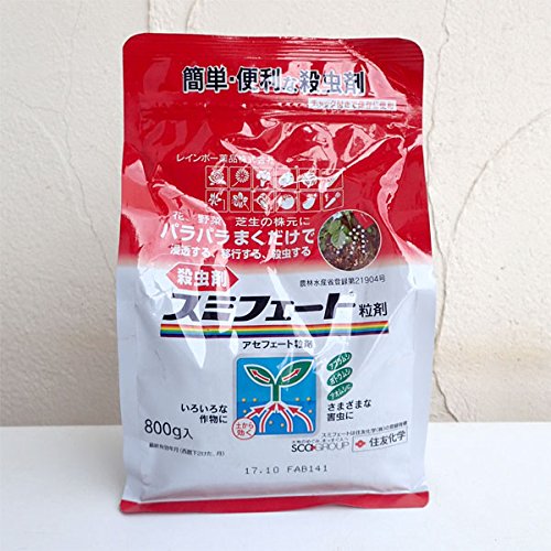 - 花、野菜、芝生の株元にパラパラまくだけの便利な殺虫剤です。浸透移行性で効果が長持ちします。保管に便利なチャック付き。容量:800グラム成分:アセフェート(有機リン系)
