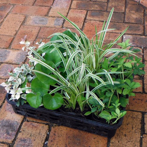 ★お試し栽培用のお買い得セット。 寄せ植えや花壇に使いやすい、各品種3株ずつの4品種12株でお届けします★ 和風庭園の下草としてポピュラーな4品種のセットです。 日陰に強い品種ばかりなので、樹木の下や北向きの玄関前にもおすすめです。 セット内容: ツワブキ3~3.5号ポット × 3 ハツユキカズラ3号ポット × 3 フッキソウ3~3.5号ポット × 3 ヤブラン(リリオペ):斑入りヤブラン3.5号ポット × 3 品種説明 ○ツワブキ 丈夫で日陰の植栽に向き、玄関わきや樹陰を明るく彩り、秋の庭では貴重な花となります。