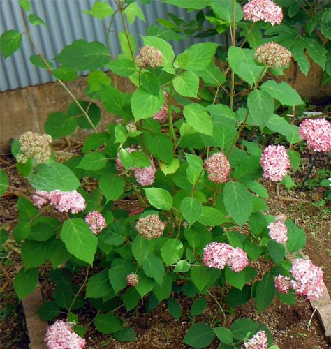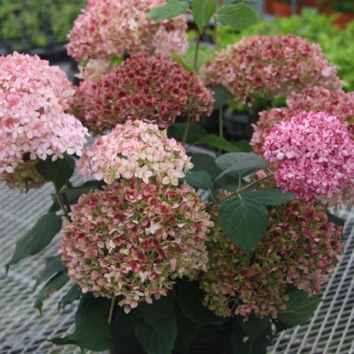 - 一つ一つの花は小さいのですが、全体では直径25cmもの大きな花となり見ごたえがあります。 花色は咲き進むにつれ、淡いグリーンに変わっていきます。 アナベル(ピンク花):北米原産の最新品種です。 蕾の頃から赤く、花の咲き始めから美しいピンク色です。 タイプ:ユキノシタ科の耐寒性落葉低木植付け適期:2月~4月、7月~9月開花期:6~7月樹高:約1.5m日照:日向~半日陰向き栽培方法:日向~半日陰で水はけのよい、肥えた土を好みます。 ピンク花は白花のアナベルに比べるとやや性質が繊細な部分があるので真夏の直射日光には日よけをしてあげてください。 花の後、8月の終わりごろまでには、新芽のついた節のすぐ上を剪定します。 また、ほかのアジサイとは異なり今年伸びた枝に花芽をつけるので、春先に前年枝を強く剪定しても大丈夫です。