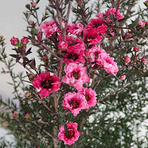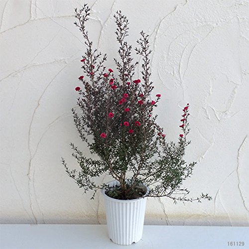 ギョリュウバイ葉ニュージーランド原産のティーツリーの仲間。細い枝にたくさんの葉を茂らせる、変異に富んだ常緑低木です。梅の花に似た花を冬から春にかけて開花させます。開花期が非常に長く、また強健で育てやすい品種で、鉢植え、庭植えで楽しめます。耐寒性はマイナス7度まで。ピンク花品種です。タイプ:フトモモ科の半耐寒性常緑低木樹高:1~4m開花期:11~3月日照:日向むき栽培方法:春から秋は戸外の日当たりのよい場所におきます。やや湿った場所を好みますので、鉢植えの場合は鉢土の表面が乾いたらたっぷり水遣りしてください。冬は凍らない暖かい場所で管理します。枝先を剪定すると多くの小枝が出て樹姿が整います。病虫害はほとんど出ません。5号(直径15cm)鉢植え、樹高約50~70cmです。お届け時期により開花後となる場合がございますので、ご了承ください。写真はイメージです。