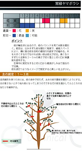 - タイプ:ミズキ科ミズキ属の常緑高木 植栽最適地:東北~九州 樹高:2~4m 開花期:5月中旬~6月 結実期:8月~10月中旬 葉の紅葉:10月中旬~12月 日照:半日陰~日向