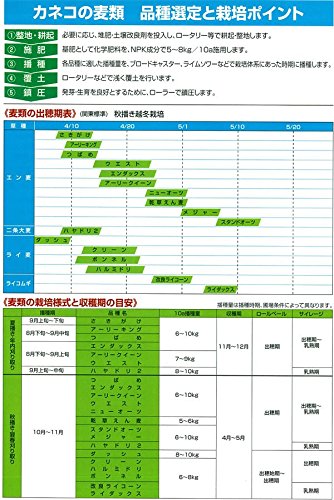 - ・過剰な養分を吸収、深層施肥効果と葉の伸びを調節。 ・糖度の安定と上昇をもたらし、果実品質が向上。 ・早はつ年でも玉伸びはよく、良質安定生産を継続。 播種量:6~8kg/10a 生産地:アメリカ(入荷時期、ロットにより生産地が異なる事があります) 播種適期: ○東北(一部除く)…10月上旬~11月上旬 ○関東以西…10月中旬~12月上旬 収穫適期: ○東北(一部除く)…5月上旬~5月下旬 ○関東以西…4月上旬~4月下旬 栽培方法: 土壌酸度はpH6.5~5.0が最適です。 播種前に雑草を取り除き、床土を平らにしてください。