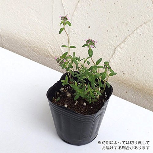 ローズピンクの小さくてかわいい花をたくさん咲かせるほふく性のタイムです。タイムの中でも耐寒性・乾燥に強く、グランドカバーとしておすすめです。タイプ:シソ科の耐寒性常緑低木草丈:10cm(這性)開花期:5~6月日照:日向むき栽培方法:日当たり、水はけのよい冷涼な場所を好みます。多湿に弱いので、なるべく水はけ良く育ててください。平地なら土盛りをするとよいでしょう。梅雨の前に刈り込みをしてください。夏の間、暑い地域では地上部が茶色に枯れこむことがありますが、秋にはまた復活します。挿し木、株分けで殖やすことができます。使用農薬(有効成分):ペルメトリン1回生産地:宮城県写真は成長時(開花時)のイメージですが、お届けの際は苗の状態です。お届け時には個体差があります。★時期によりピンチ(剪定)してお届けする場合がございます。使用農薬(有効成分):ペルメトリン1回生産地:宮城県
