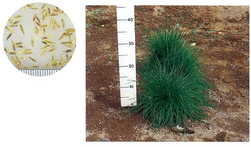法面緑化、飛砂防止、ゴルフ場、競技場、公園などに使われる西洋芝の種ハードフェスク、ハードトップ(ターフタイプ品種)です。普通種に比べ耐暑性を強化した品種で、放任条件下では北海道から九州まで利用可能です。ファインフェスクによく見られる夏枯れが非常に少ない品種です。平坦地では冬枯れが少なく、冬季も緑度を維持しやすい草丈です。葉幅が細いことや草丈が低いことからワイルドフラワーとの混播適性に優れます。耐陰性が強く、ゴルフ場のラフ利用に最適です。