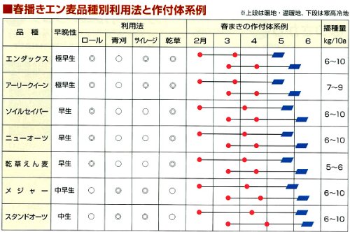 - 土壌線虫抑制や硬盤破砕などの目的で栽培される農業用燕麦の種です。 ニューオーツはキタネグサレ線虫を強力に密度抑制し、キスジノミハムシ被害を軽減します。 低温伸長性、初期成育が良好です。 キャベツ、白菜、サツマイモなどの栽培農家で収穫後に栽培し、休閑期の地力増強に役立てられています。 春、晩夏、秋播きの三季播きができる万能品種。 すき込みやすい細茎品種です。 出穂始期を目安に土中にすきこんでください。 詳しい説明は エン麦ニューオーツ:品種の特性・栽培体系例 (Amazonでは 'エン麦ニューオーツ:品種の特性・栽培体系例 ' へのリンクは掲載されません) をご覧ください。