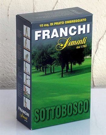 イタリア・FRANCH社製の西洋芝のミックス種です。ソットボスコは日陰に最適な西洋芝。寒さには非常に強く、また暑さにも耐えます。葉色はやや明るい緑色です。北向きの庭、樹木の下などにおすすめです。まき時:春~晩夏播種適温:20度前後生育温度:10~25度耐寒性:マイナス15度まで草丈:2~4cmミックス内容:・LOLIUMPERENNEBELIDA30%・NUMAN25%・FESTUCARUBRACORAIL15%・POAPRATENSEBALIN15%・POATRIVIALISDASAS15%まき方:播種前に、人による踏圧、乾燥、加湿など生育を妨げるような条件があっても早く回復できるような『強い芝生=丈夫な根』を形成できるよう、土壌の排水性を高め、緩やかな傾斜をつけ、小石を取り除き凸凹を無くしておきます。準備の整った土壌の上に目土を敷き、平らにします。ムラにならないようまんべんなく播種します。目土等で薄く覆土します。播種後、種子が移動しないよう気を付けながら水をまきます。発芽までの期間は乾燥しないようたっぷりと水やりをします。内容量:250g(約16万粒)入り、約5平米分です。