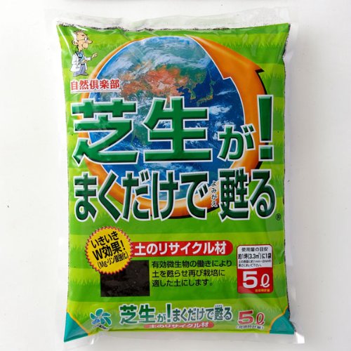 - 芝生の上から薄く(1~2mmの厚さに)まくだけで、通水性・通気性が悪くなった土をやわらかくし、芝生を再びイキイキ育てます。マグネシウムとリン酸のダブル効果で、芝生が青々と甦り、分けつ芽・葉・根の成長を促進します。気温変化や乾燥等に対するストレスを軽減し、葉色・光合成濃緑がアップ。土壌の老廃物を分解し、土を団粒化し水はけを良くします。根がつまって元気がなくなった芝生を、再びイキイキと育てます。容量:5リットル入り(重量約2kg)1袋で約1坪(3.3平方メートル)分です。