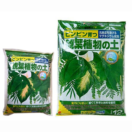 光合成を助けるマグネシウムを配合した、観葉植物にぴったりの土です。年1度の鉢替えの際にお使いください。観葉植物が生き生きと、大きく成長します。また、挿し木や株分けにもお使いいただけます。主な配合原料名:木質堆肥・バーミキュライト・軽石・ピートモス※緩効性化成肥料も含まれております。○使用方法(植え替え方)鉢から株を抜き固まった根をほぐしながら根鉢を1/3くらい崩し、痛んだ古い根を切り取ります。鉢底土、用土を入れ植え付けたら鉢底から流れ出るくらいたっぷりと水を与えます。根付くまで2週間程度日陰で管理します。5リットル入りと12リットル入りの各1袋セットです。