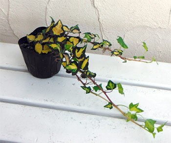 - 栽培方法: 鉢植えにすれば観葉植物としてもたのしめ、室内の弱い光にも耐えます。夏の強い日差しには葉が傷みやすいので室内ならば明るい窓辺に、戸外ならば夏の西日を避けた日当たりから半日陰に置きます。 戸外でも冬越ししますが、寒い地域では葉が赤みを帯びるので、室内で管理してください。 植付け時に頂部を3~5cmピンチするとよく分枝します。壁面などを緑化する場合は、壁になるべく近づけて植え付けるとよいでしょう。 乾燥には比較的強いのですが、空気が乾くとハダニが発生しやすくなりますので、薬品等で防除してください。 肥料は春と秋に各1回緩効性化成肥料を施しますが、多肥にしすぎないよう注意してください。
