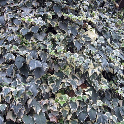- ヘデラ・カナリエンシスはオカメヅタとも呼ばれる大葉の常緑性庭園用アイビーです。性質は強健で庭園のグランドカバーに最適。一年中緑を保ち、日向、半日陰のどちらでも栽培できます。 一般には広い面積を覆うグランドカバーとして利用されます。壁面やフェンスの場合、自力では登はんしませんが、つるを誘引すれば壁面を覆うように広がります。また、塀の上など高い場所から下に垂らすように育てることもできます。 この品種は明るい白斑入り葉です。冬には寒さで白の部分が赤くなり、トリカラー(3色)として観賞価値が高くなります。