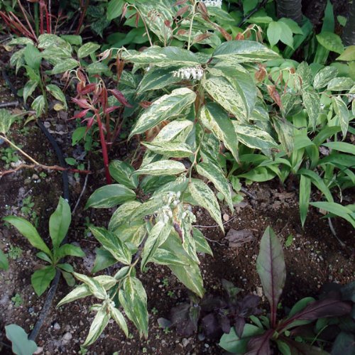 - 栽培方法: 半日陰で湿り気のある場所を好みます。 春または秋に挿し木で殖やすことができます。 グランドカバーにする場合は1平米あたり20~40本を目安としてください。