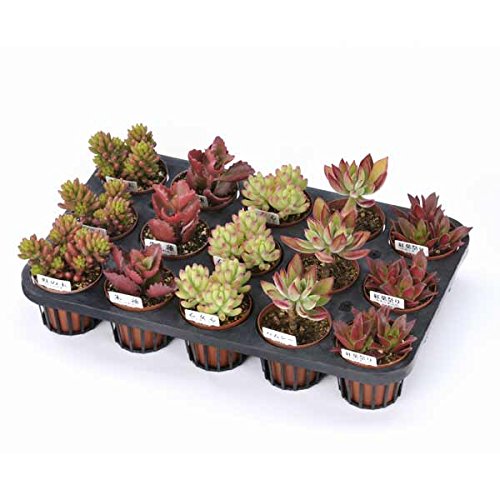 - 色も形もバリエーション豊富で楽しい多肉植物。手間がかからず、年間を通して美しい色が楽しめます。最近人気の多肉植物だけの寄せ植えをお楽しみください。秋になると美しく紅葉する品種ばかりをあつめて、5品種を3個ずつ1ケース15個入りでお届けします。季節に合わせて品種をお選びして詰め合わせます。品種は見計いで、その都度組み合わせますので、写真とは異なります。 ※12月~3月は配送中に凍結のおそれがありますので北海道・東北地方へのお届けができません。