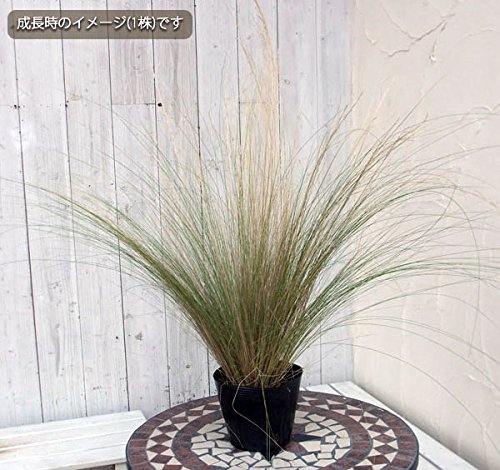 - 通称名エンジェルヘアー(天使の髪の毛)の名のとおり、柔らかく繊細な細葉を茂らせるグラスの仲間。メキシコ原産で、ボーダー花壇に最適です。成長が早く、植え付け後短期間でボリュームが出て、密度のあるブッシュ状になる植物です。耐暑性、耐寒性に優れ、栽培は手間がかかりません。草花の間にアクセントとして植えると落ち着いた雰囲気を醸し出します。庭植え、コンテナガーデンにもおすすめです。学名:Stipatenuissimaタイプ:イネ科スティパ属の耐寒性多年草草丈:50cm用途:花壇、コンテナ、ハンギングバスケット、寄せ植え日照:日なた~半日陰栽培方法:日当たりの良いところを好みます。植え込み後はたっぷりと水を与えます。その後は、鉢土の表面が乾いてから、随時水を与えてください。多湿に注意します。植え替え後、1~2週後(根が鉢の底に届くようになったら)液肥を毎週に1~2回与えるか、緩効性の肥料を元肥として与えて下さい。お届けする苗は4号(直径12cm)ポット入りです。写真は成長時のイメージです。