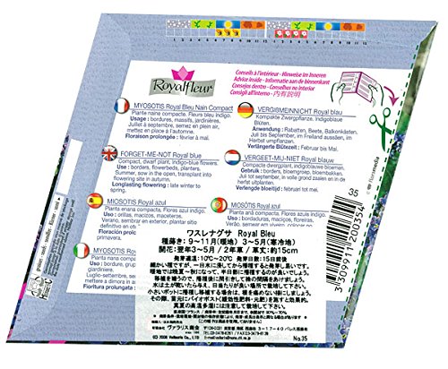 - フランスの花の種です。インディゴブルーの小輪花を多数つける小型のワスレナグサの種です。ボーダー花壇の縁どりや鉢植え、プランターでお楽しみください。咲き終わった花がらを摘み取ると次々にたくさん花を咲かせます。とても美しい絵袋ですので、プレゼントにもお薦めです。裏面に簡単な栽培方法が記載してあります。タイプ:二年草まきどき:9~11月(暖地)、3~5月(寒冷地)開花:翌年3~5月(まいた時期により変わってきます)発芽適温:10℃~20℃草丈:約15cm内容量:約0.5g絵袋サイズ:菱形 1辺約12.5cm★保存期間は2年以上と長く、ヨーロッパの中でも非常に品質の良い種です。ただし、種の保管状態によって数値は変わってまいります。種は高温多湿に弱いので、冷暗所で保管して下さい。保存期間は長いですが、なるべく早めにご使用いただく事をおすすめします。