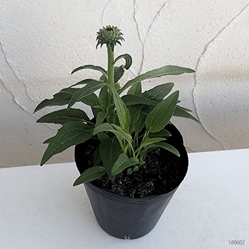 - 夏の花、エキナセア。印象的な花が花壇で人気です。夏の暑さに負けずに開花し続けます。切花やドライフラワーにも利用されます。グリーンジュエルは緑がかった白系の花。さわやかな花色の人気品種です。 タイプ:キク科バレンギク属の耐寒性多年草 草丈:60~100cm 開花期:6~9月 植え付け適期:3~5月 用途:花壇、切花、ドライフラワー 日照:日なた 栽培方法: 日当たり、水はけのよい場所で乾かし気味に育てます。特に梅雨期から夏にかけては多湿からくる蒸れには気をつけます。株元は風通しよく管理します。1平方メートル当り一握りの緩効性化成肥料を施しておけば、追肥はほとんど必要ありません。株が疲れて花色がさえないときは、薄い液肥を、月1~2回与えてやります。日陰地で肥培すると徒長するので注意します。寒さには比較的強いです。挿し芽や、秋に種をまいても殖やせます。 4号(直径12cm)ポット植えです。写真は開花時のイメージです。