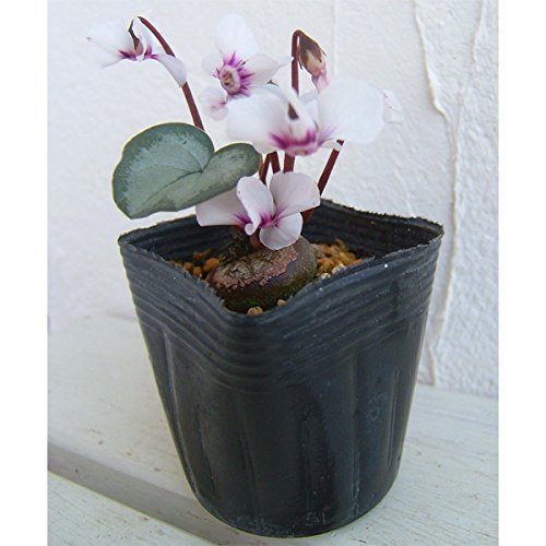 • コウムは東欧から中近東にかけて自生するシクラメンの原種のひとつ。   園芸品種に比べて花や葉が小ぶりで、とても可憐な印象です。   耐寒性が高く、マイナス15度前後まで耐えます。   原種の中では日本で最も育てやすいシクラメンの一つで、庭植えできます。   花の大きさは1cmほどです。   花色は白からピンク赤紫と幅広く、花の少ない冬の時期に鮮やかな色が映えるます。   秋(10月)から展開する葉の模様のバリエーションも多い品種です。   この株は白系の花色で緑葉系ですが、品種特性状、多少色幅がありますので、ご了承ください。
