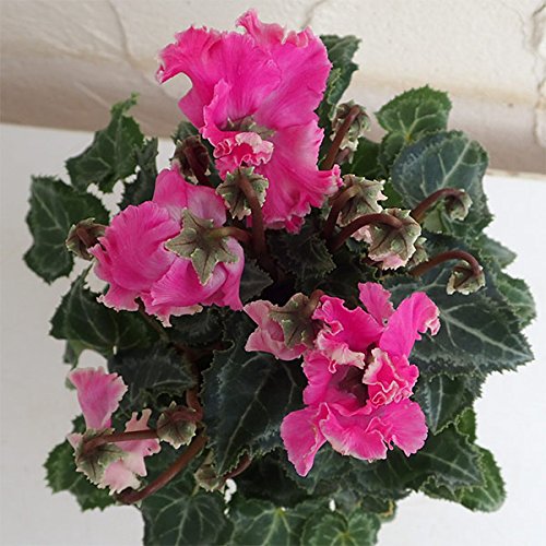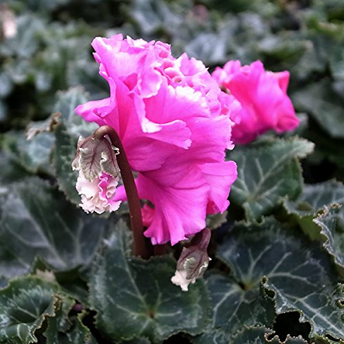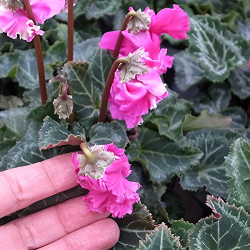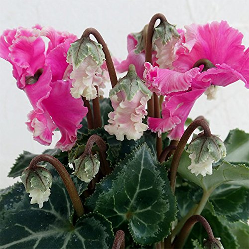 - 栽培方法: シクラメンは、高温の場所(冬場15℃以上)を好みませんので、できる限り涼しい場所(5℃ぐらいまで)においてください。激しい雨や風から避けられる場所、シクラメンの花は霜を嫌いますので、戸外では凍結しない南側の軒下など、室内ではレースのカーテン越しに光が入る窓辺が理想的です。シクラメンの葉はマイナス2度までならダメージを受けることなく観賞価値を保ちますが、多雨などによる過湿には注意が必要です。年明けに葉色が薄くなり、花が小さく咲くようでしたら、薄めの液肥を必要に応じて与えてください。土の表面が白く乾いてきたら、水を与えてください。また、極端に水切れすると株が痛みますので注意してください。咲き終わってしまった花や古くなって枯れてしまった葉は、定期的に取り除いてください。