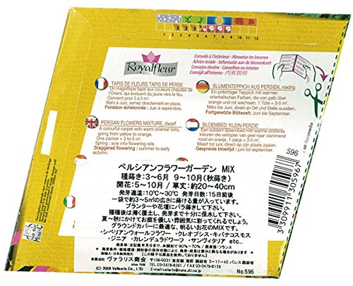 - フランスの花の種です。黄色からオレンジの、温かみのある色合いの花のミックス種です。グランドカバーに適した、草丈の低い品種ばかりです。夏から秋にかけて、お庭をやさしい雰囲気に彩ってくれるでしょう。品種は、シベリアんウォールフラワー、コレオプシス、キバナコスモス、ジニア、カレンデュラ(わい性)、サンビタリアなど。とても美しい絵袋ですので、プレゼントにもお薦めです。裏面に簡単な栽培方法が記載してあります。まきどき:3~6月、9~10月(秋蒔き)開花:5~10月(まいた時期により変わってきます)発芽適温:10℃~30℃発芽日数:15日前後草丈:約20~40cm内容量:約5g絵袋サイズ:菱形 1辺約12.5cm★保存期間が長く、ヨーロッパの中でも非常に品質の良い種です。ただし、種の保管状態によって数値は変わってまいります。種は高温多湿に弱いので、冷暗所で保管して下さい。保存期間は長いですが、なるべく早めにご使用いただく事をおすすめします。