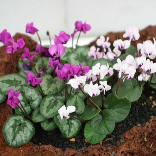 原種系シクラメン:コウム・シルバーリーフ赤白セット2.5号ポット[庭植え可能]