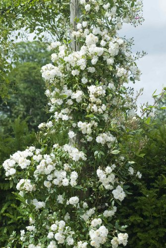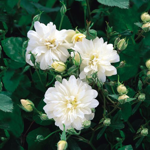 - 花色:白 花形:ポンポン咲き 花径:小輪 花弁数:20枚 開花時期:四季咲き性(春~晩秋) 樹高:高さ250cm×幅400cm 樹形:つる型 香り:弱めのムスク香 用途:庭植え、鉢植え、アーチ、トレリス、フェンス 栽培方法は バラの植え方とお手入れ (Amazonでは 'バラの植え方とお手入れ' へのリンクは掲載されません) をご覧ください。
