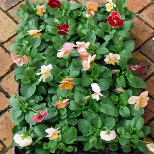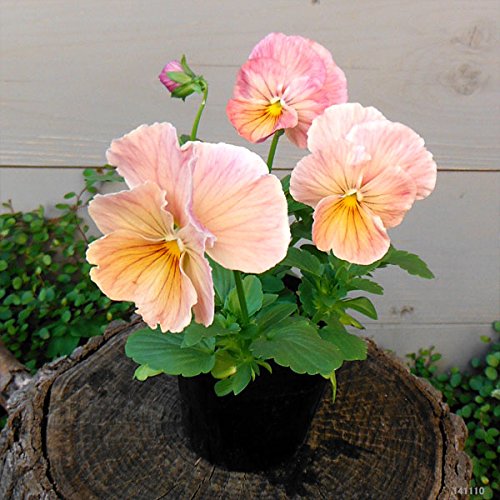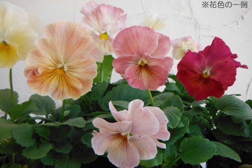 - 花径7~10cm程の大輪パンジー。目なしのサーモン色のシェードタイプは柔らかい花色で人気があります。早生で多花性種です。※花色にはばらつきがでます。写真は成長時(開花時)のイメージです。タイプ:スミレ科スミレ属の耐寒性1年草草丈:10~30cm、葉張り25cm開花期:11~5月植え付け適期:10~5月用途:花壇、鉢植え、ハンギング日照:日向むき植え付けの目安:鉢植えは4号鉢に1株、庭植えは15cm間隔栽培方法:排水のよい、保水力のある場所を選びます。植え付け前に水をたっぷり与え、根付くまでは適度な湿り気を保ちます。開花中は次々と花を咲かせますので週に1回、液肥を与えてください。葉が紫色になったり、黄ばんで生育が悪い場合は、液肥を11月下旬頃迄に2-3回追肥します。冬は株全体を寒風から保護し、霜から守ってください。