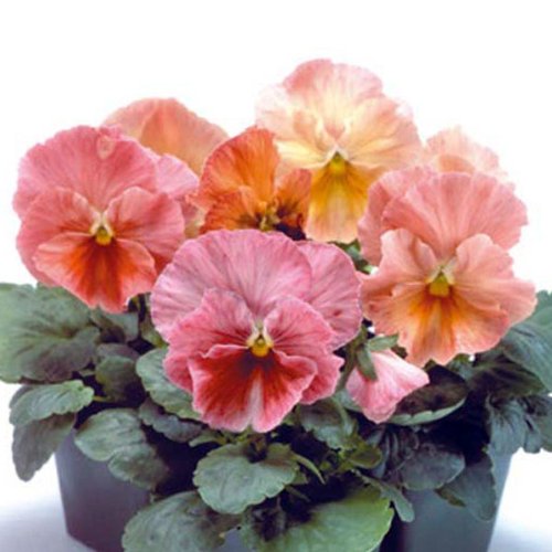 花径7~10cm程の大輪パンジー。目なしのサーモン色のシェードタイプは柔らかい花色で人気があります。早生で多花性種です。※花色にはばらつきがでます。写真は成長時(開花時)のイメージです。タイプ:スミレ科スミレ属の耐寒性1年草草丈:10~30cm、葉張り25cm開花期:11~5月植え付け適期:10~5月用途:花壇、鉢植え、ハンギング日照:日向むき植え付けの目安:鉢植えは4号鉢に1株、庭植えは15cm間隔栽培方法:排水のよい、保水力のある場所を選びます。植え付け前に水をたっぷり与え、根付くまでは適度な湿り気を保ちます。開花中は次々と花を咲かせますので週に1回、液肥を与えてください。葉が紫色になったり、黄ばんで生育が悪い場合は、液肥を11月下旬頃迄に2-3回追肥します。冬は株全体を寒風から保護し、霜から守ってください。