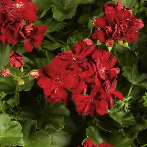 シビルシリーズは、半八重~八重の華やかなゼラニウムで、花立ちが非常に良く、節間が短くコンパクトな草姿で株がまとめやすい品種です。 ほふく性のゼラニウムの仲間で、葉がアイビーに似ています。 花首が強いので花がしっかり立ち上がり、小鉢から大鉢まで育てられます。 ヨーロッパでは窓辺を飾る植物としてとても人気があります。 つやのある緑葉に鮮やかな花色が映えます。 ケイトはダークレッドの花色で、早春から咲き始める品種です。