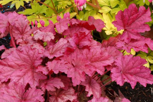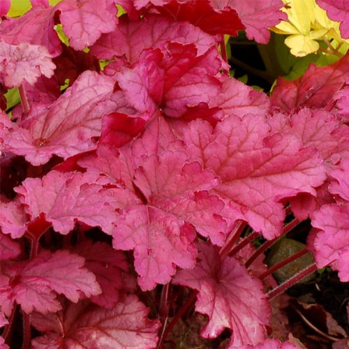 ベリースムージーはローズピンクからパープルピンクまで葉色が変化する品種です。とても鮮やかな葉色で大株になるため、インパクトがあります。クリームホワイトの花が咲きます。(Amazonでは''へのリンクは掲載されません)タイプ:ユキノシタ科ツボサンゴ属の耐寒性常緑多年草和名:ツボサンゴ原産地:北アメリカ草丈:30~40cm横張り:45~55cm開花期:晩春~初夏用途:花壇、鉢植え、切り花、グランドカバー、シェードガーデン、コンテナ、ハンギングバスケットなど日照:日なた~半日陰~日陰秋から春までは直射日光で大丈夫ですが、光線の強くなる7月中旬頃~9月頃は半日陰(シェードガーデン)で耐寒性:マイナス15度まで※環境にも配慮した新しい時代のお花の植物栽培システムMPSの認証を受けている生産者の商品です。写真は成長時(開花時)のイメージですが、お届けの際はまだ苗です。お届け時には個体差があります。葉色は季節や置き場所によって変化します。