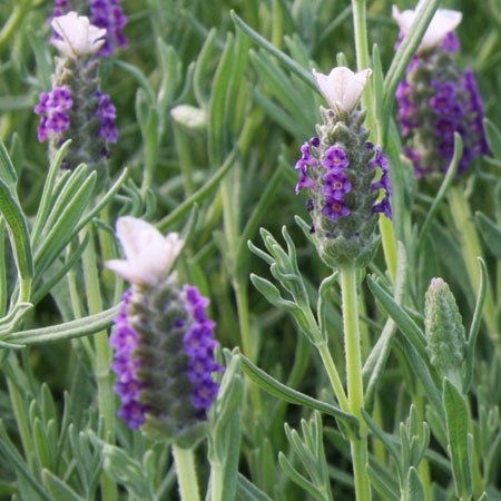 - うさぎの耳のようなひらひらが可愛いフレンチ系ラベンダーです。 花うさぎは澄みきった青と白の組み合わせが清涼感のある、さわやかなラベンダーです。 タイプ:シソ科ラヴァンデュラ属の常緑性低木(多年草)(マイナス3~5度まで)草丈:約30cm原産地:スペイン東南部開花期早春~初夏用途:コンテナ、花壇日照:日向むき栽培方法:日当たりの良い、風通しのよいところを好みます。