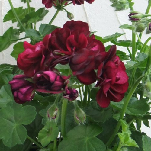 - まるでバラの蕾のような豪華な八重花。 また、花立ちが非常に良く、節間が短くコンパクトな草姿で株がまとめやすい品種です。 ほふく性のゼラニウムの仲間で、葉がアイビーに似ています。 ヨーロッパでは窓辺を飾る植物としてとても人気があります。 つやのある緑葉に鮮やかな花色が映えます。