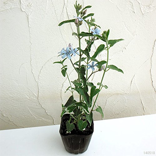 すがすがしいブルーの五弁花が夏から秋まで咲きつづけ、人気の高い品種です。茎は半ツル状でよく伸び、這うように横に広がります。葉は全体にやわらかな産毛が密生します。半耐寒性で、生育適温は20~30度ですが、耐暑性・耐寒性とも高く、寒冷地以外は戸外で冬越しできます。15度以上あれば1年中開花し続けます。タイプ:キョウチクトウ科の半耐寒性宿根草草丈:約30~50cm開花期:6~8月用途:鉢植え、花壇日照:日向むき栽培方法:乾燥した日当たりのよい場所を好み、多湿を嫌います。風通しのよい場所に植えてください。露地または鉢植えで育てます。雨に当たると花に染みが出やすくなりますので注意してください。3月~9月はつきに1回程度液肥を規定倍率に薄めて施してください。芽が伸びてきたら随時摘芯するとわき芽が延び、花数が増えます。写真は成長・開花時のイメージですが、お届けの際はまだ苗です。